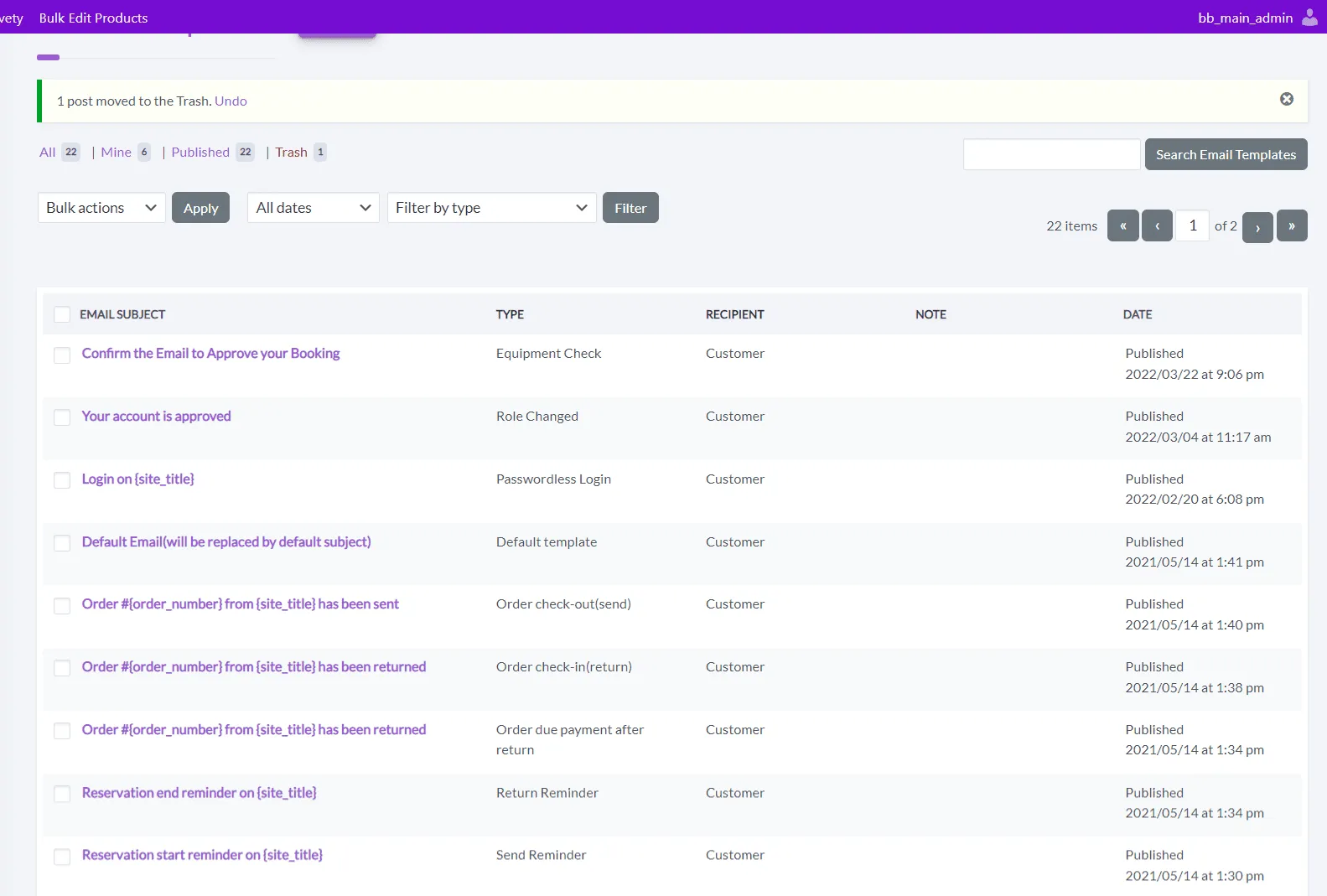 The system sends out automated emails with notifications after the activities, such as new orders, canceled bookings, balance changes, past-due payments, and others.