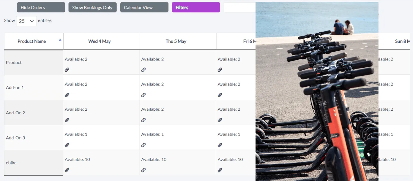 Reservety’s Scooter Rental Software allows you to add your scooters and related products to the digital system, where you can monitor the usage and availability of each item right from your computer.